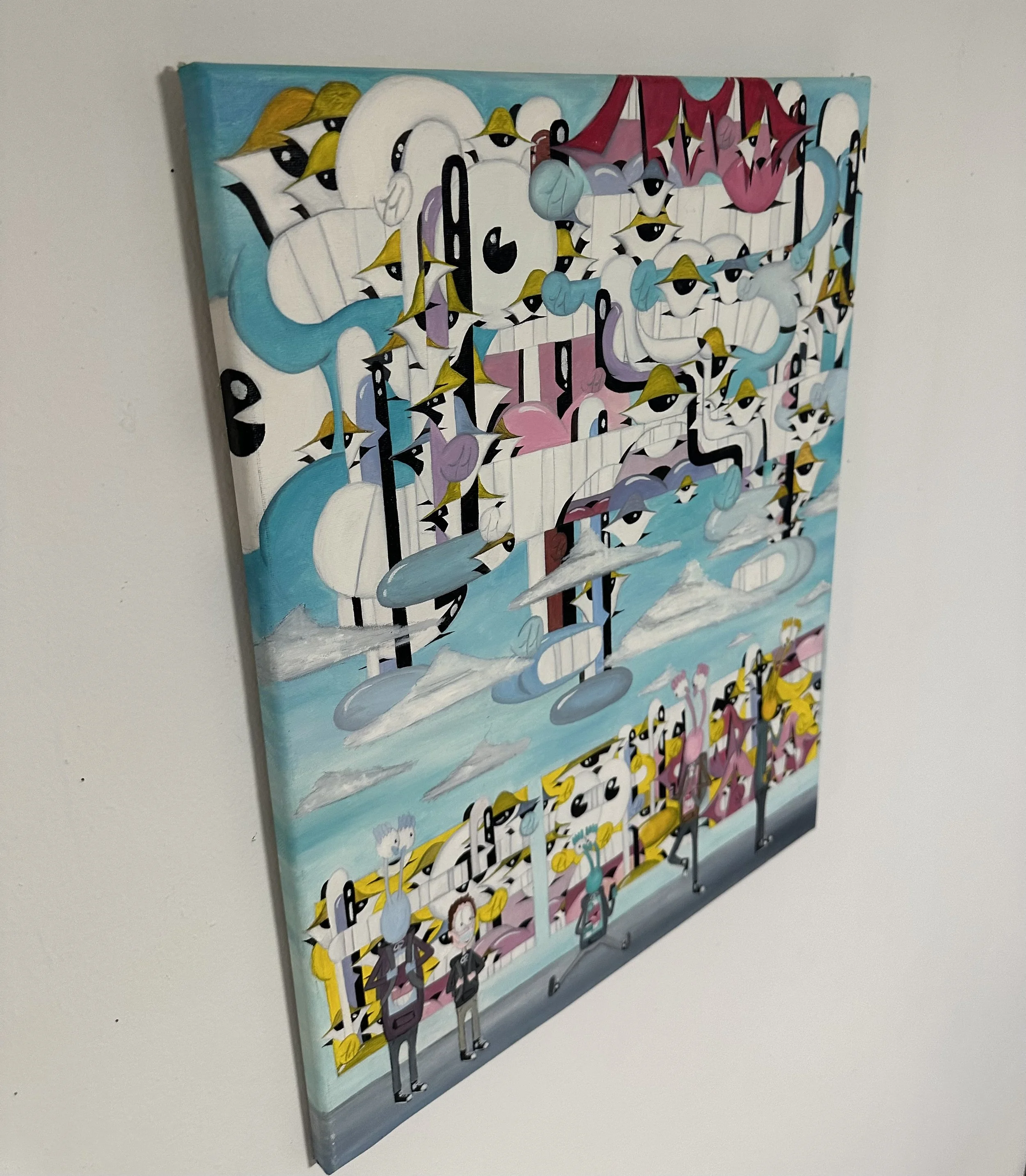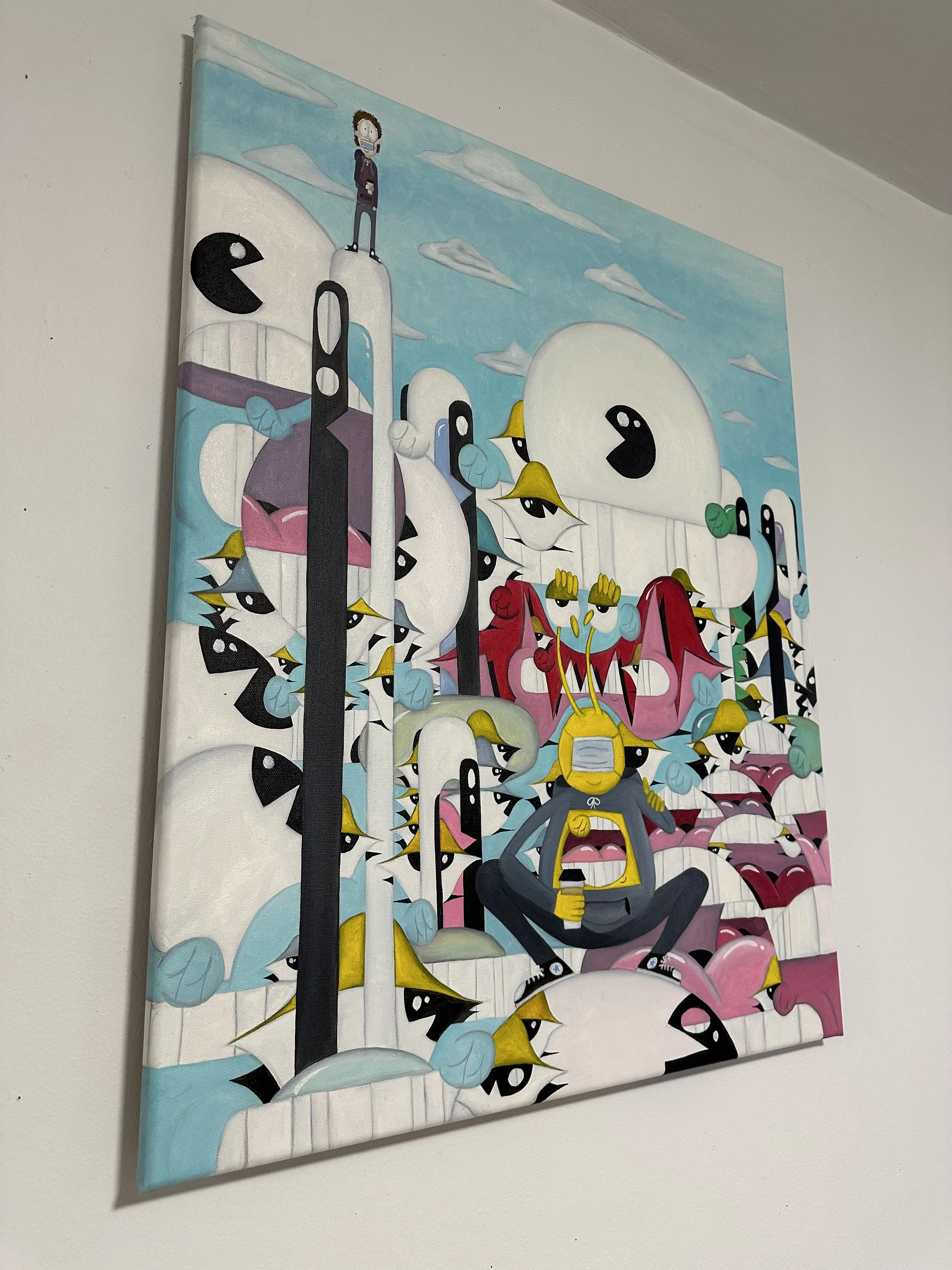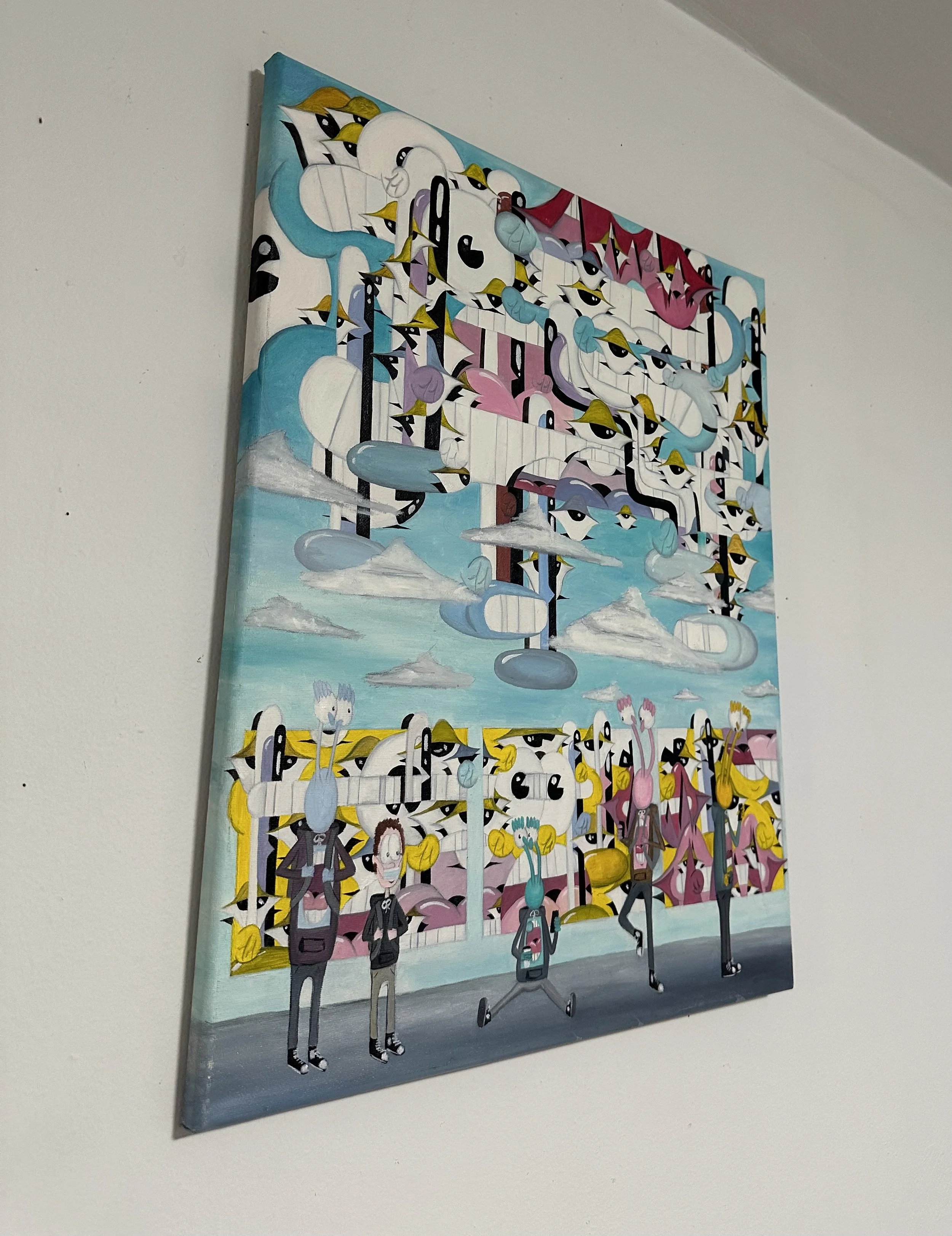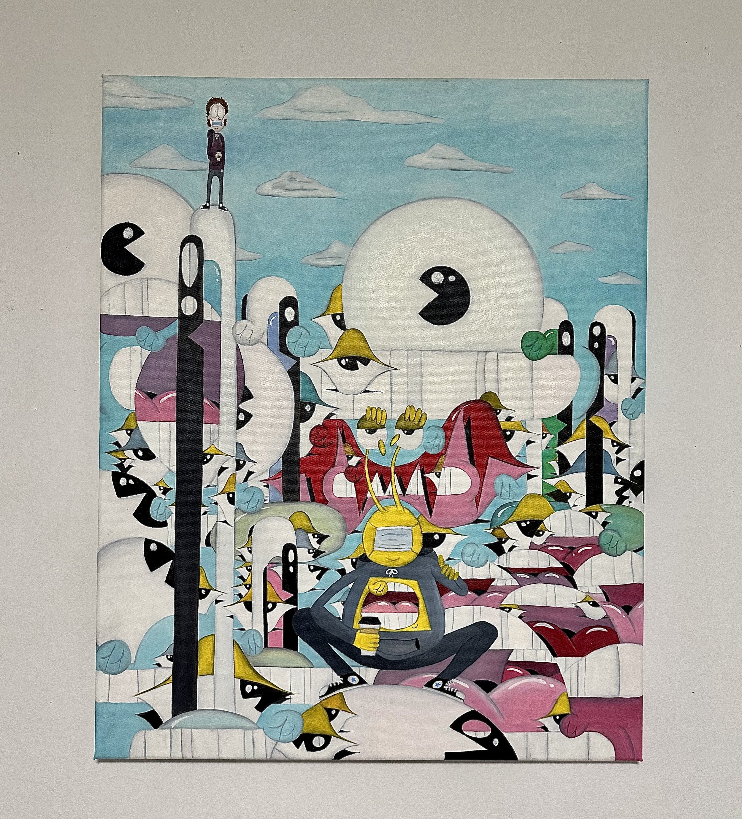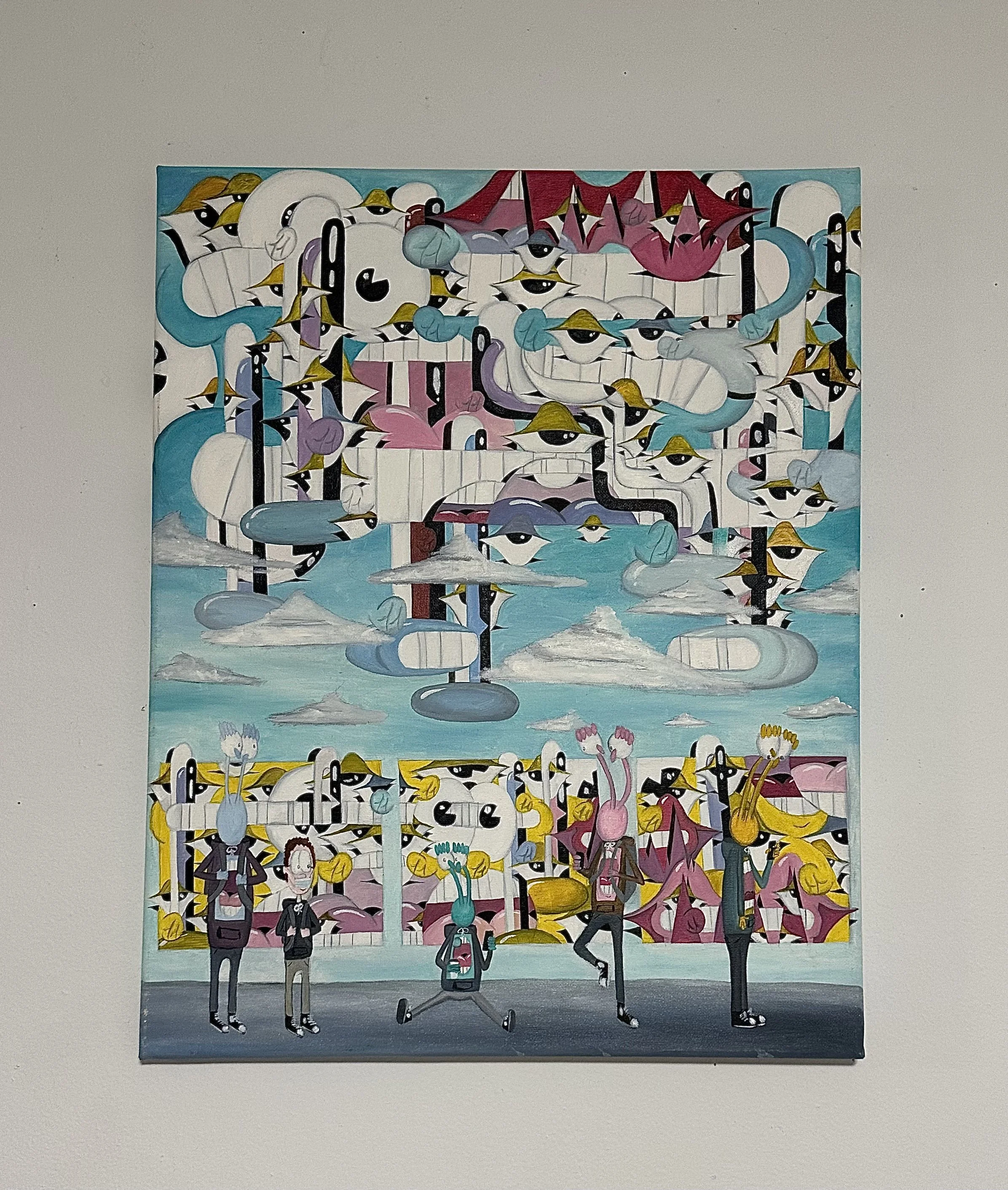 A lotta clouds from $50.00 A lotta aliens from $50.00 a lotta water from $50.00 Wild Style $60.00 Balloons $60.00 Therapy $60.00 Mac & Doby $60.00 Blue $60.00 Mac & Doby Pillow from $80.00 Quarantine Cover Album $700.00 That’s the thing, know what I’m saying $300.00 Waiting in line $400.00 A painting in a painting $1,000.00 Who are you texting? $1,400.00