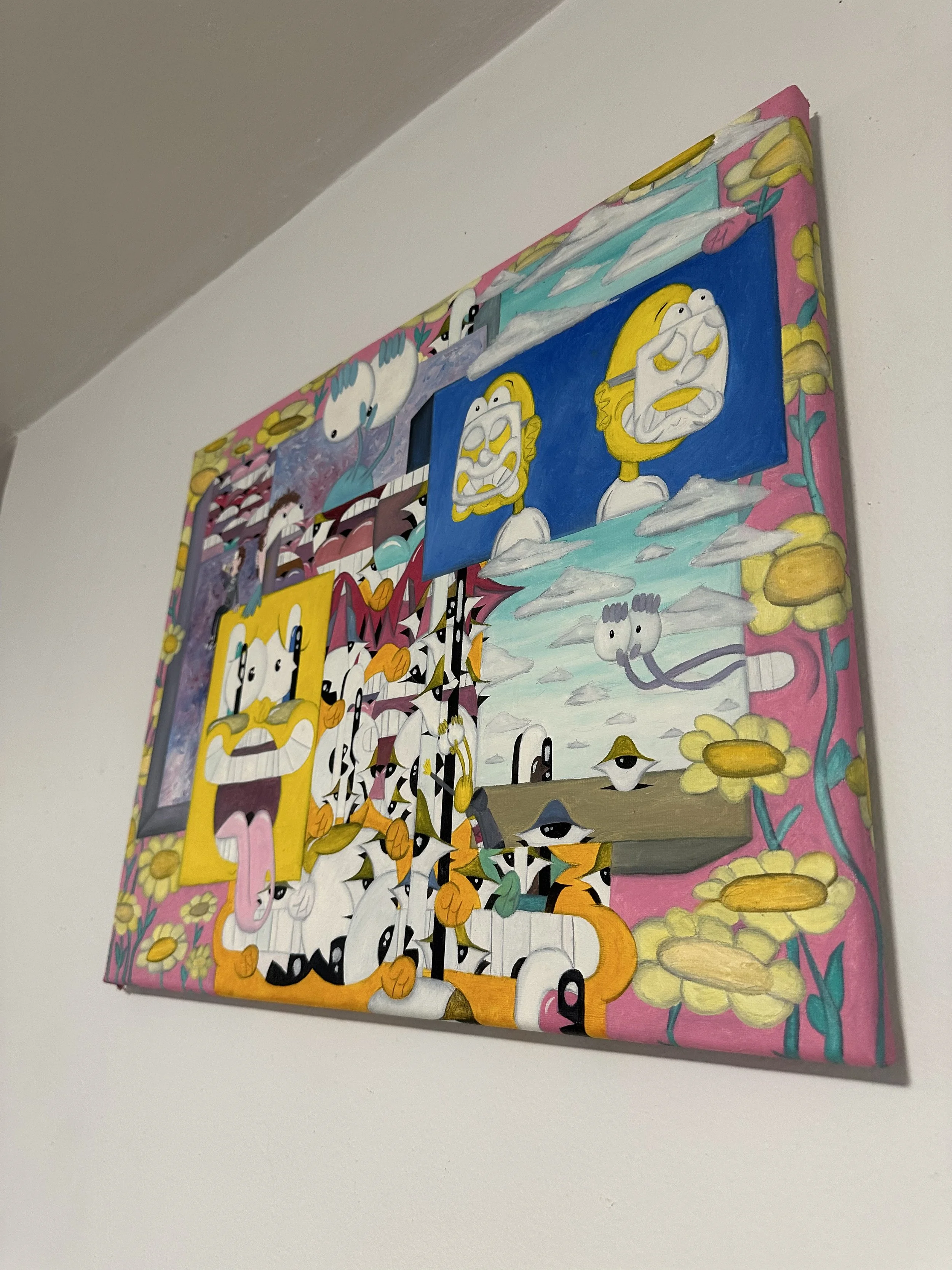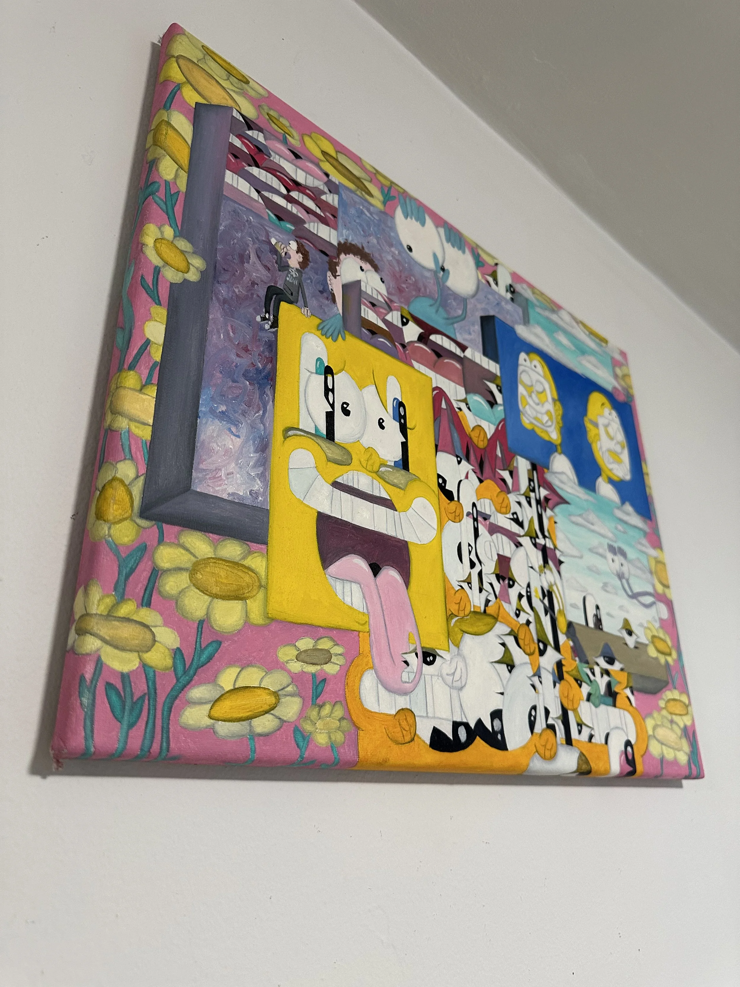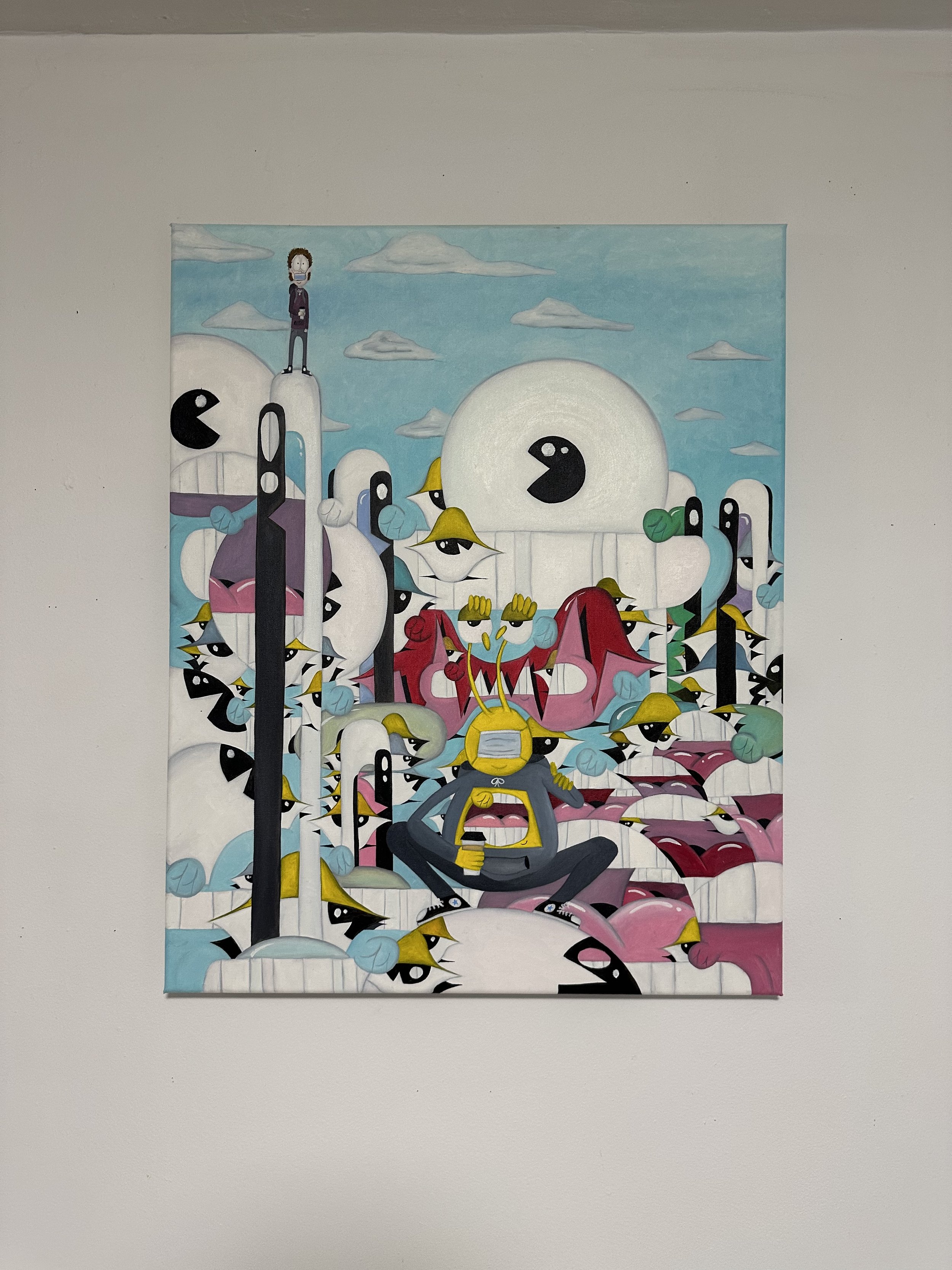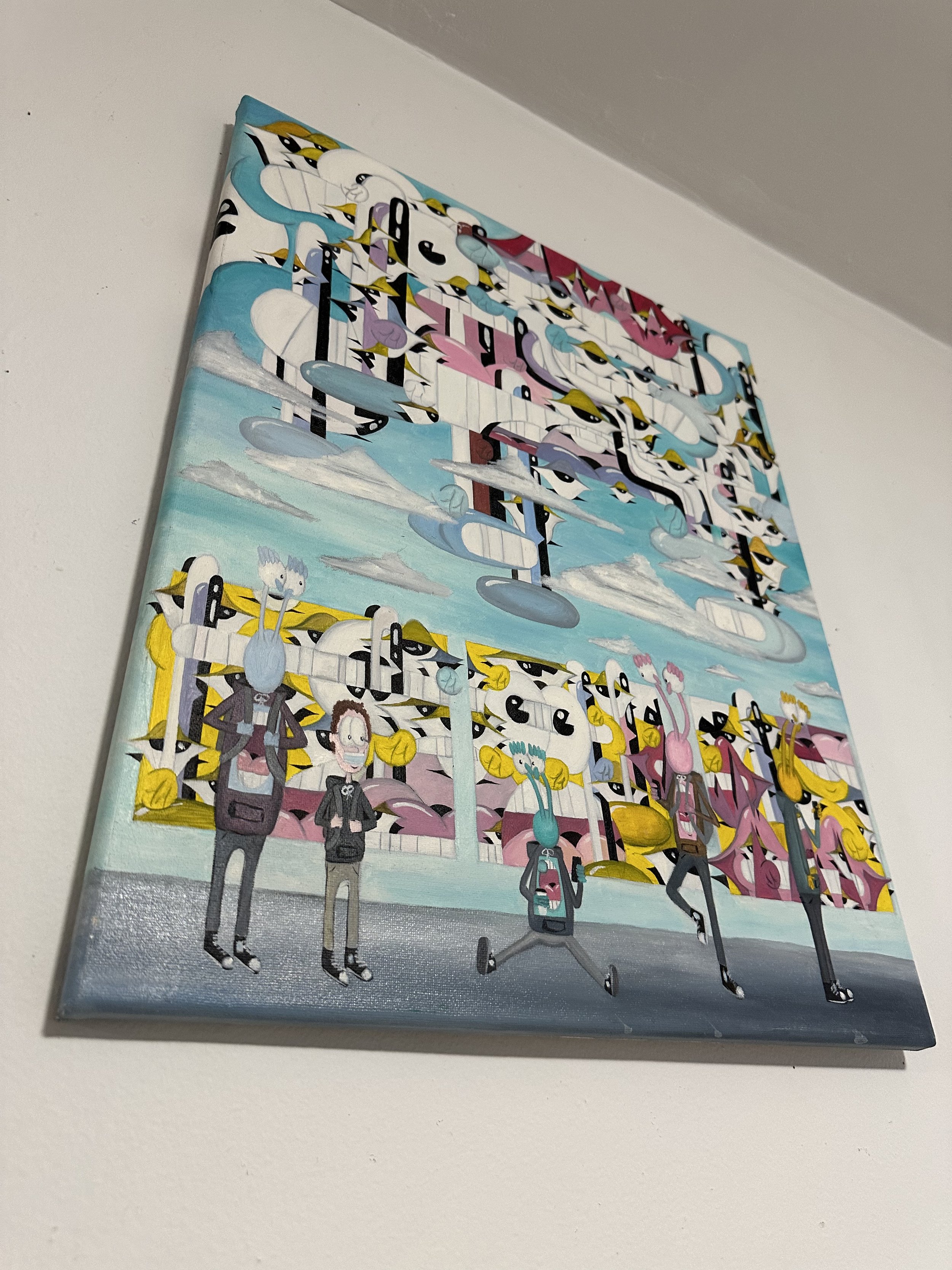 A lotta clouds from $50.00 A lotta aliens from $50.00 a lotta water from $50.00 Wild Style $60.00 Balloons $60.00 Therapy $60.00 Mac & Doby $60.00 Blue $60.00 Mac & Doby Pillow from $80.00 Quarantine Cover Album $700.00 That’s the thing, know what I’m saying $300.00 Waiting in line $400.00 A painting in a painting $1,000.00 Who are you texting? $1,400.00