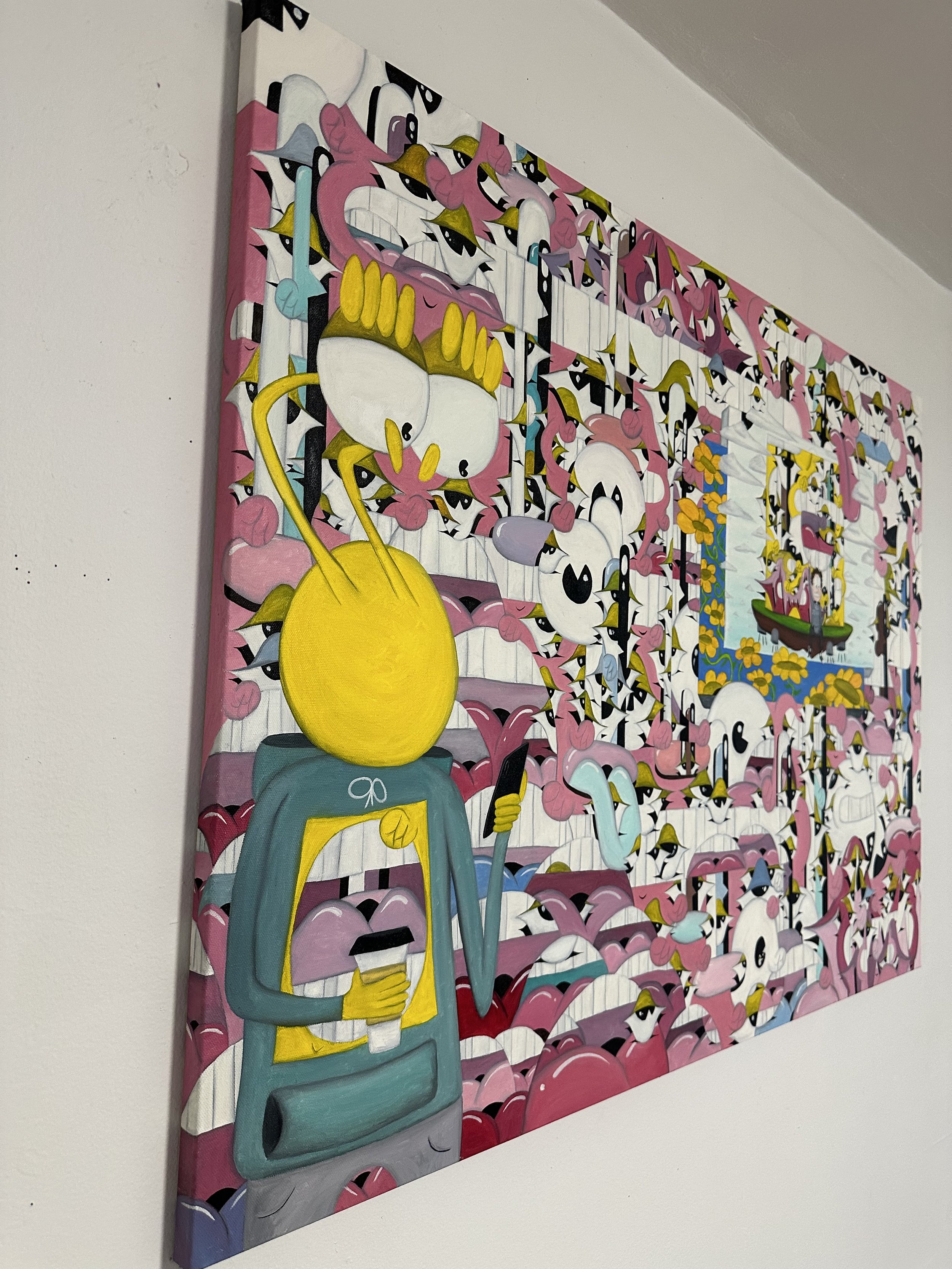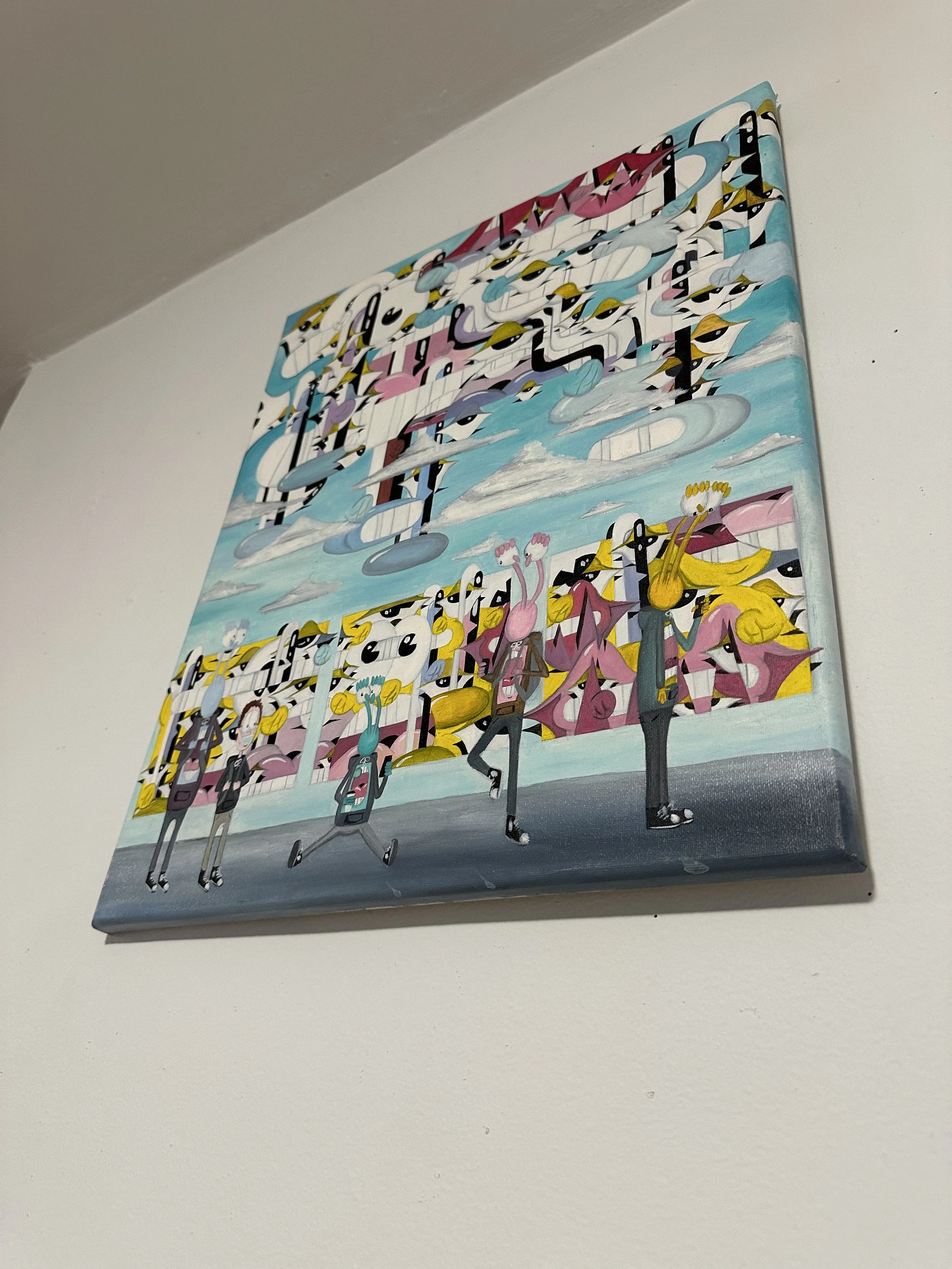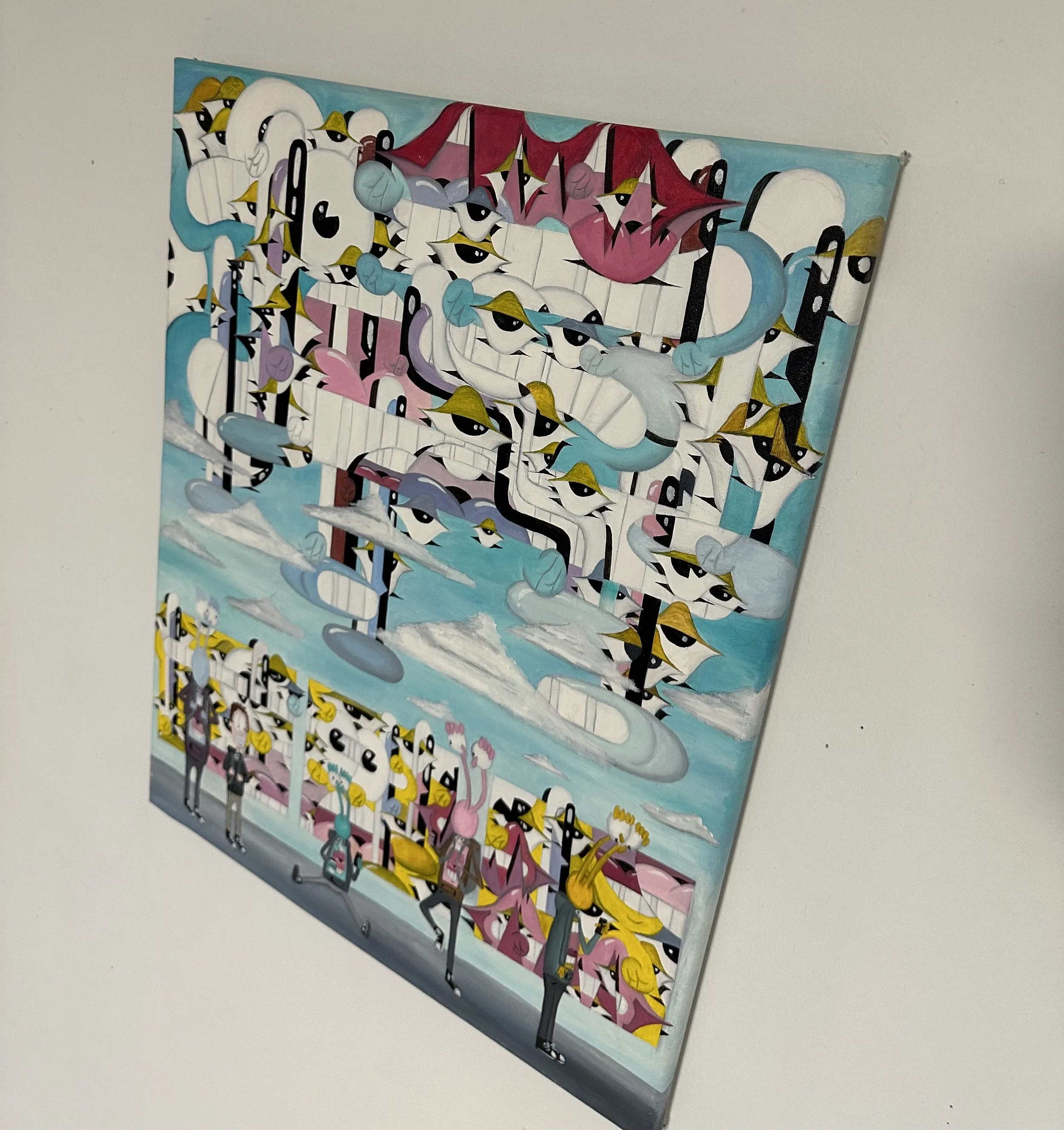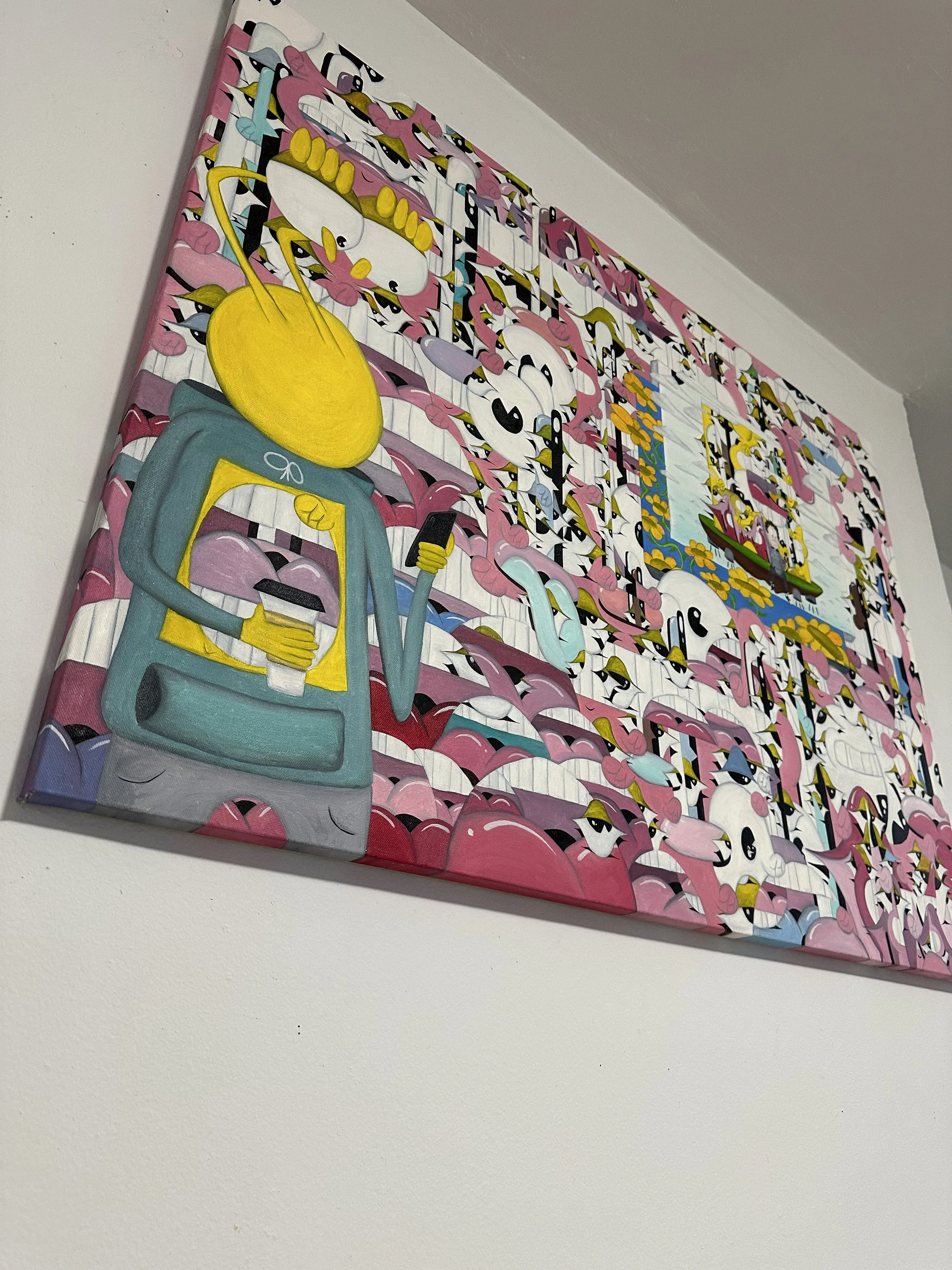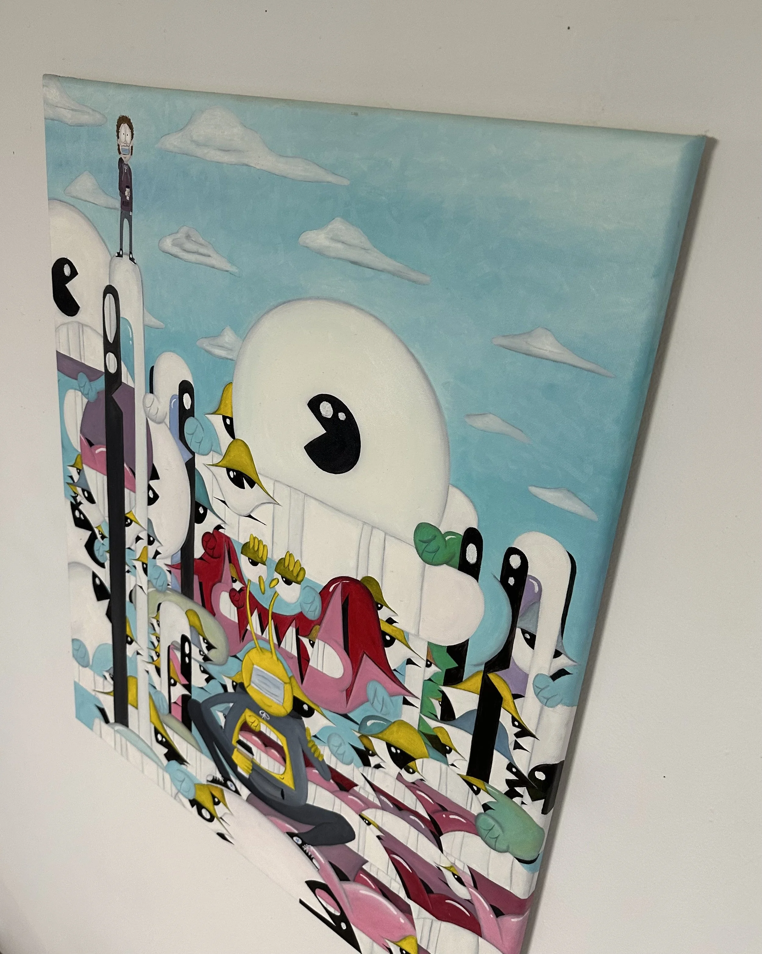 A lotta clouds from $50.00 A lotta aliens from $50.00 a lotta water from $50.00 Wild Style $60.00 Balloons $60.00 Therapy $60.00 Mac & Doby $60.00 Blue $60.00 Mac & Doby Pillow from $80.00 Quarantine Cover Album $700.00 That’s the thing, know what I’m saying $300.00 Waiting in line $400.00 A painting in a painting $1,000.00 Who are you texting? $1,400.00